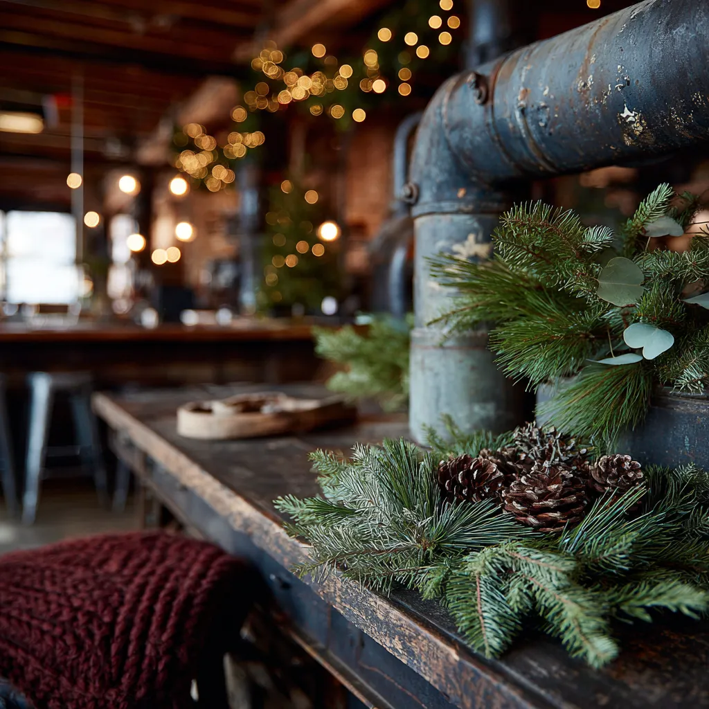 Elevate your industrial loft’s holiday spirit with a focus on tactile beauty and ambient lighting. Imagine a carefully curated mix of weathered wood, brushed metal, and cozy textiles that invite touch and warmth. 🪵✨ String lights woven through exposed pipes or draped across open shelving add that magical shimmer. Consider incorporating natural elements like pinecones, eucalyptus, and branches for an organic, festive touch. This approach enhances the existing architectural features of your loft while infusing it with undeniable Christmas cheer, making it the perfect backdrop for holiday gatherings. #IndustrialDecorIdeas#ChristmasLoftIdeas#RusticChristmas#LoftDecor#HolidayVibes#UrbanChristmas#InteriorStyling#WarmGlow#TexturalDesign#IndustrialHoliday