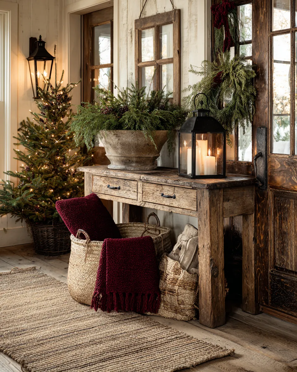 Warm & Welcoming Entryway: Rustic Christmas Charm, Modern Twist ✨