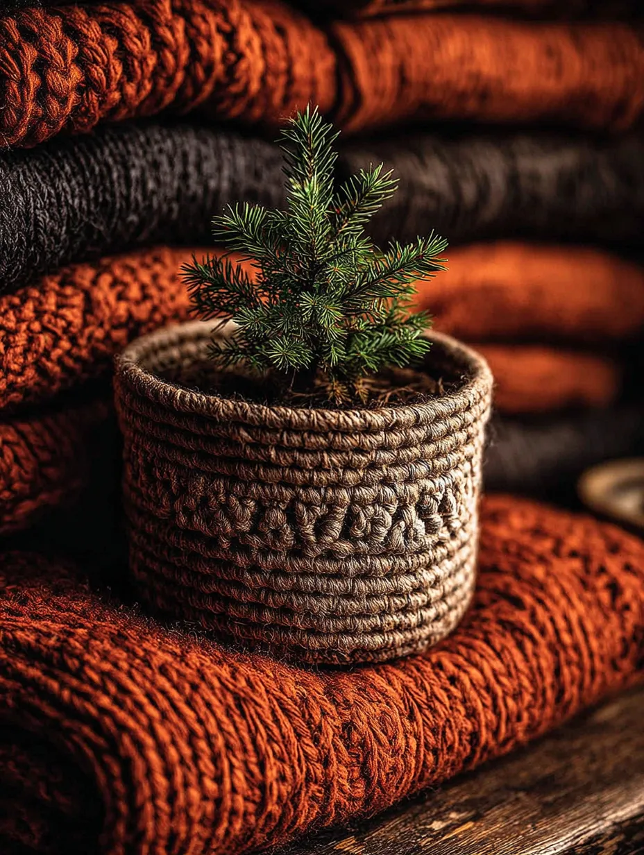 I'm loving the idea of layering natural textures: think chunky knit blankets, macrame plant hangers as tree ornaments, and woven baskets as stylish planters for mini Christmas trees.