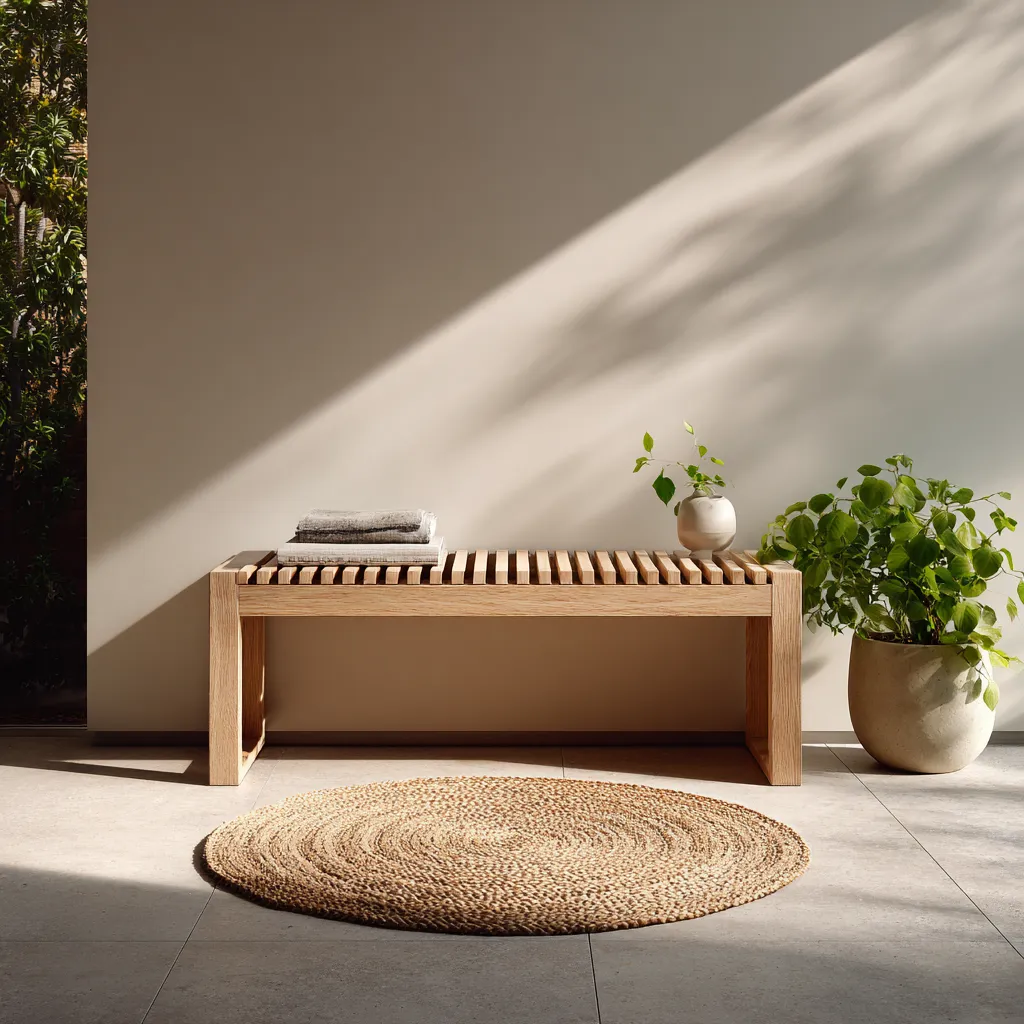Enhance your entryway with a Japandi bench that’s both functional and beautifully serene. It's the perfect blend of form and purpose. 🌿