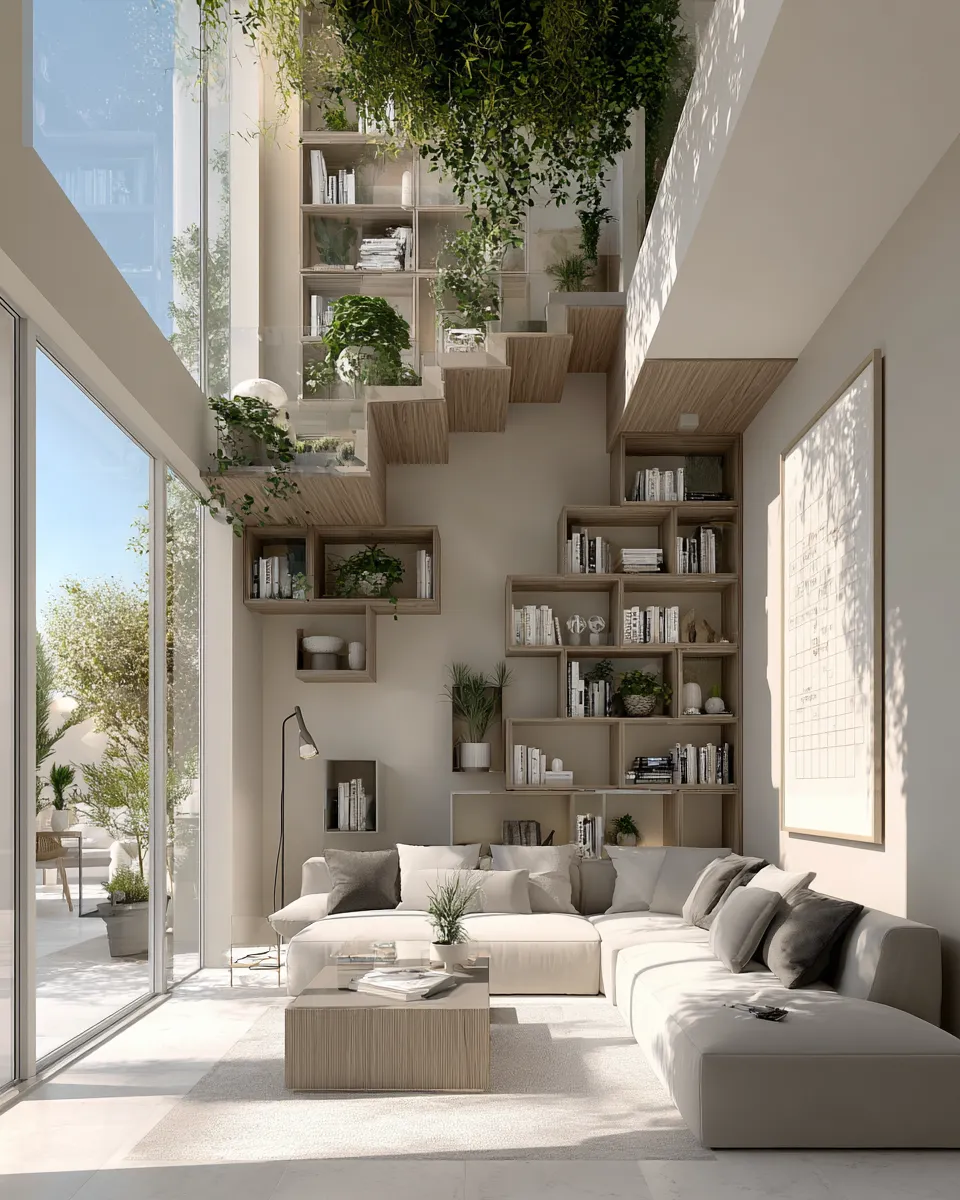 In tight urban living, going UP is your design superpower! ⬆️ Think vertically to create beautiful and functional spaces. Utilize wall-mounted shelving to display decor and store essentials. Tall, slim bookcases draw the eye upwards, making rooms feel larger. Consider furniture that maximizes vertical space, like a loft bed or a tall storage unit. 📚 Hang plants from the ceiling to add greenery without taking up floor space. Smart lighting strategically placed on vertical elements can highlight architectural features and add depth. 💡 Don't underestimate the power of shelves and height! Save this for your vertical design inspo! #VerticalSpaceIdeas #SmallSpaceLiving #ApartmentHacks #InteriorDesign #MaximizingSpace #StorageSolutions #HomeDecorIdeas #TinyHome #UrbanDesign #SpaceSaving