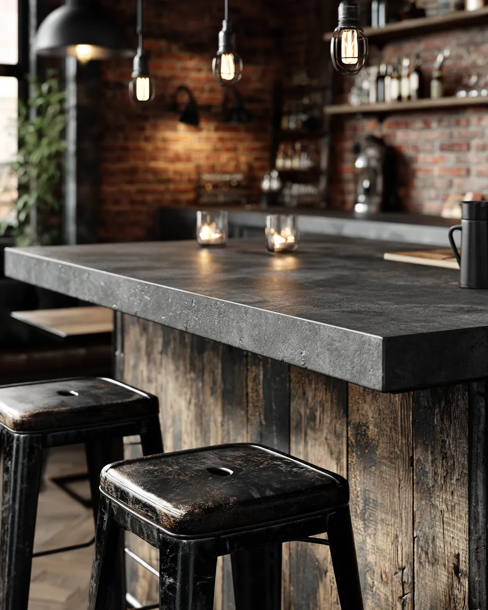 Upgrade your kitchen island or bar area with industrial bar stools! 🍻 Think sturdy metal frames combined with distressed leather or dark wood seats. They add that perfect blend of ruggedness and comfort. These stools are not just seating; they’re statement pieces that enhance your industrial aesthetic. Save this for your kitchen inspo! 🖤