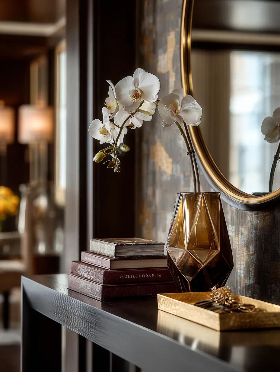 * **Geometric Vases:** A simple change like a faceted gold vase can transform a bookshelf or side table.