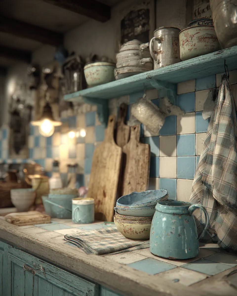 * **Open Shelving:** Perfect for displaying charming pottery, vintage tins, and essential ingredients.