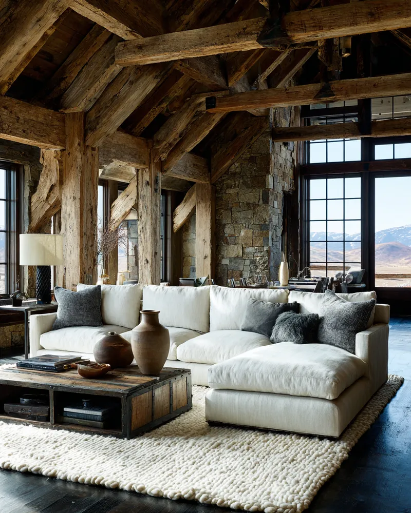 Mountain Modern Living Room: Cozy Elegance with Natural Textures 🏔️✨
