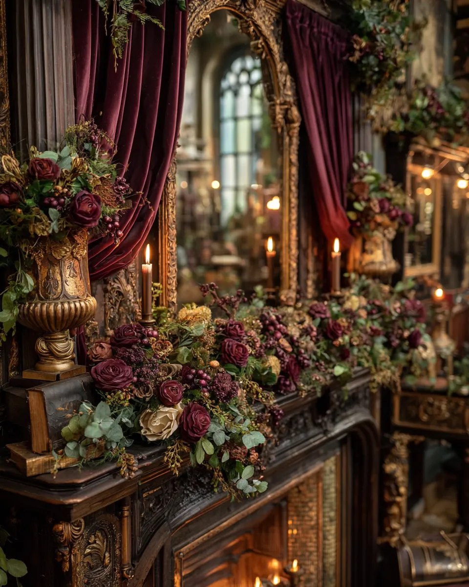 Transform your fireplace into a Gilded Age masterpiece this holiday season! 🔥 Your mantel is the perfect canvas to showcase opulent Victorian Christmas decor. Think rich tapestries, velvet swags in deep jewel tones, and an abundance of gilded elements. Add ornate brass candlesticks, vintage-inspired stockings with intricate embroidery, and a grand centerpiece like a gilded clock or antique mirror. Complement the decor with a lush garland adorned with faux berries and deep red roses. This creates a stunning, inviting focal point that exudes historical elegance and festive warmth. Save this for your ultimate mantel goals! #VictorianChristmasMantle#GildedAgeChristmasDecor#ChristmasMantleIdeas#HolidayMantleDecor#HistoricalHomeIdeas#ElegantChristmasDecor#CozyChristmasIdeas#VintageDecorIdeas#LuxuryHomeInspo#GildedMantle