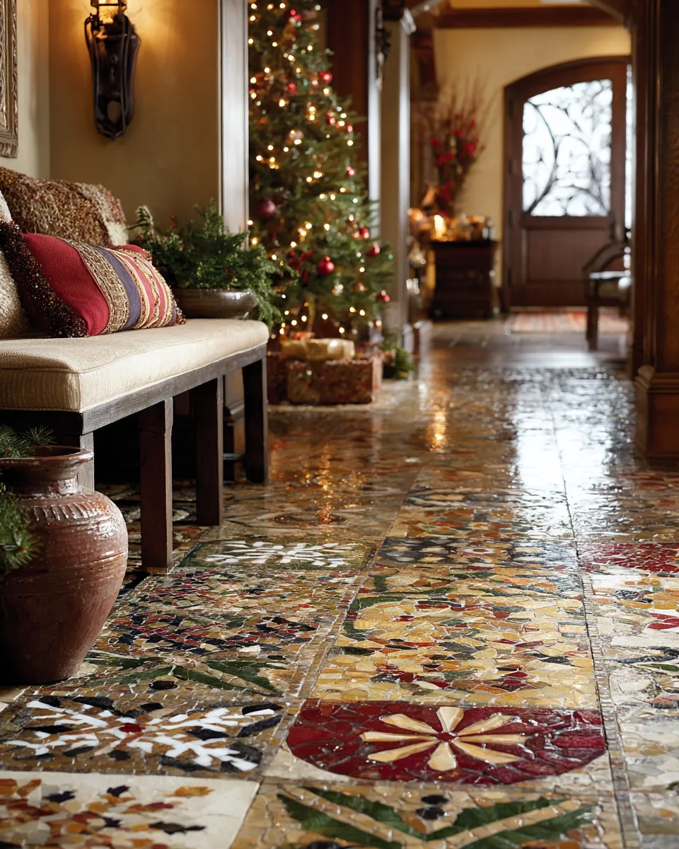 #EntrywayMosaicIdeas#ChristmasEntryway#MosaicTileIdeas#HolidayHomeDecor#HomeEntrywayIdeas#TileDesign#FestiveDecor#WelcomingHome#MosaicArt#InteriorDesignInspo