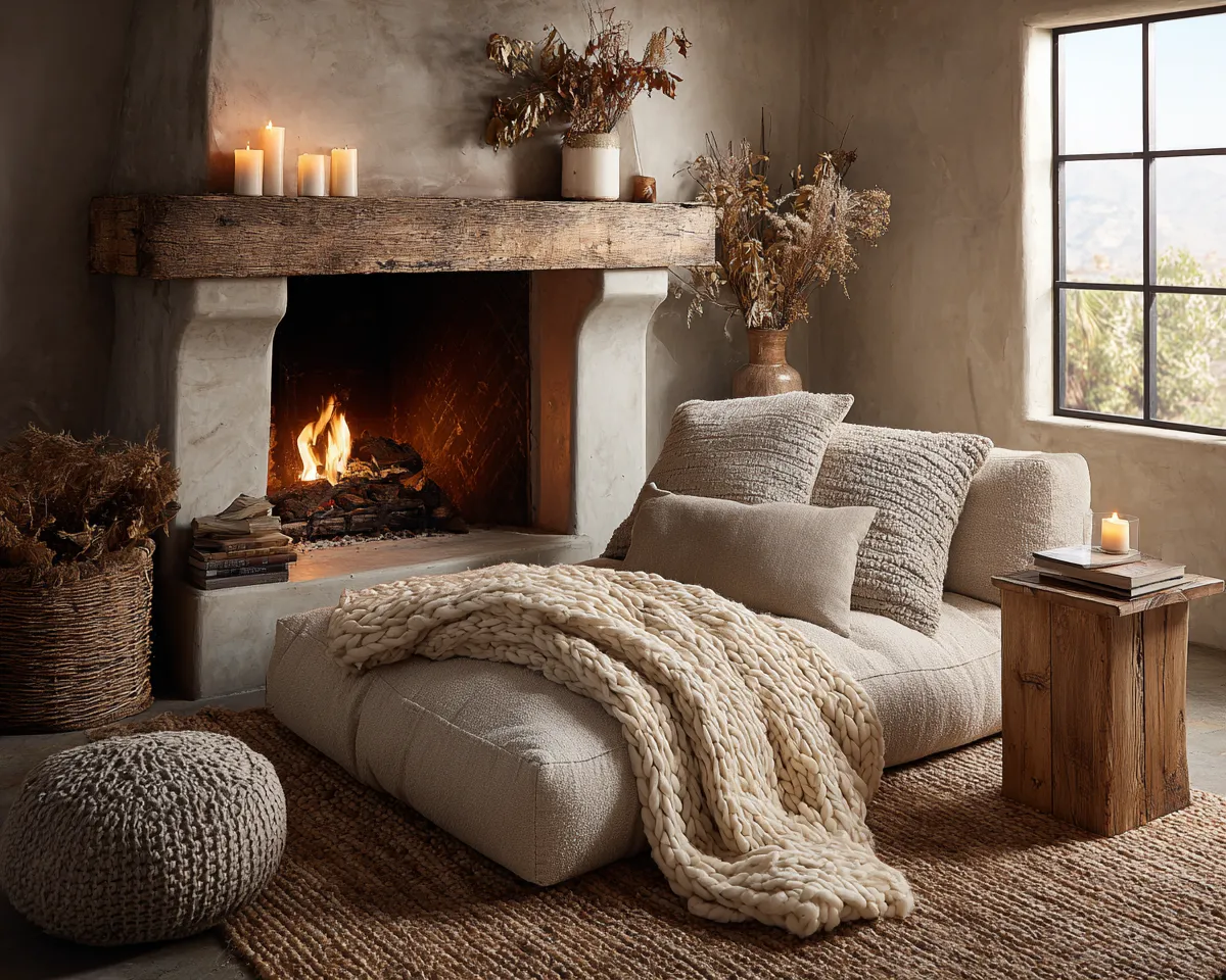 Warming Up the Winter: Japandi-Style Fireplace Nook 🛋️🔥