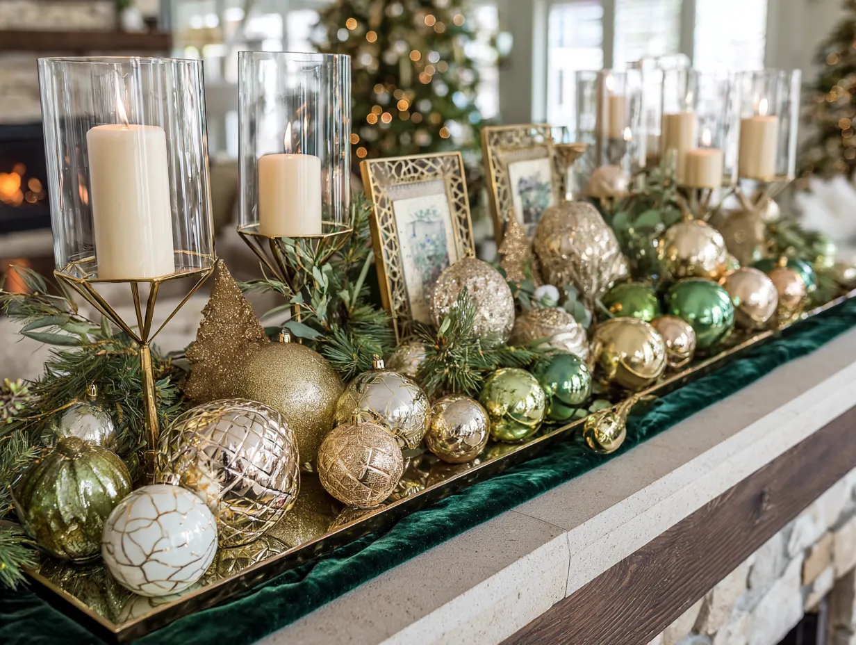 Save this for your dazzling holiday hearth inspo! #ArtDecoMantel#ChristmasMantelIdeas#FireplaceDecor#ArtDecoChristmasDecor#FestiveMantel#HolidayHome#GlamorousDecor#SymmetricalDecor#LuxuryHomeIdeas#SeasonalDecor