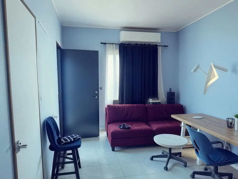 a bedroom with a wood floor, two chairs and desk with potted plants