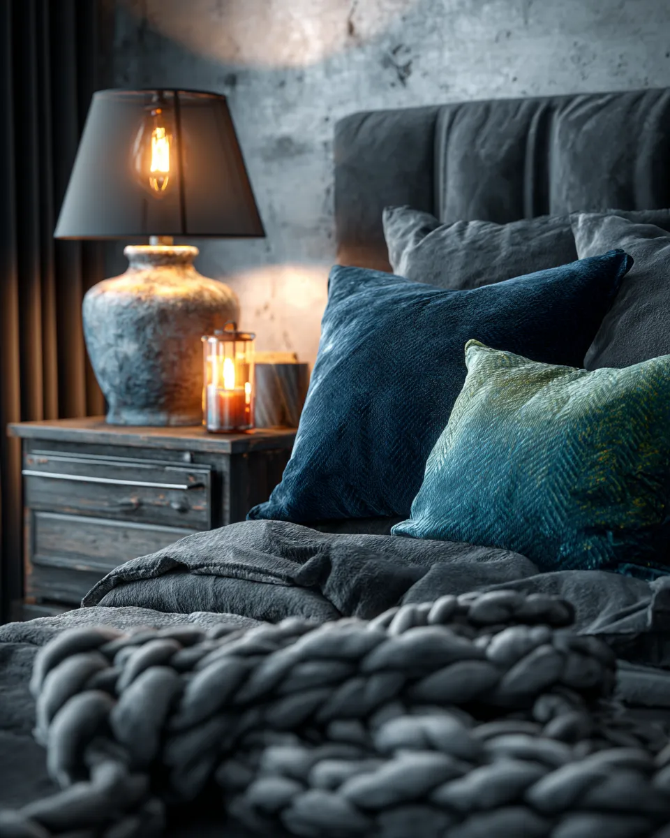 Who says industrial has to be all gray? Let’s elevate that rugged charm. For bedrooms, I love weaving in warmth and refinement. Start with a solid, dark wood bed frame paired with a muted, charcoal gray upholstered headboard. Add pops of deep navy or emerald green in your bedding or accent pillows for a sophisticated touch. 💎 Incorporate handmade ceramic lamps or metallic desk accessories to catch the light. Exposed concrete accents can be softened with chunky knit throws. The goal is a space that feels grounded, comfortable, and distinctly *you*. 🛌 Save this for your industrial bedroom sanctuary! #IndustrialBedroomIdeas#DarkWoodFurnitureIdeas#UpholsteredHeadboardIdeas#ColorInIndustrial#BedroomDesignIdeas#HomeDecorations#InteriorStyling#ComfortableLiving#BedroomInspo#UniqueBedrooms