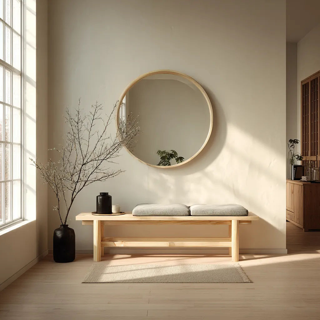 Focus on a beautiful wooden bench, a simple console table with a single ceramic vase, and a large, framed mirror to reflect light. Keep decor minimal – a strategically placed plant or a piece of natural art. Smart storage is key! Think hidden shoe cabinets and slim entryway consoles.