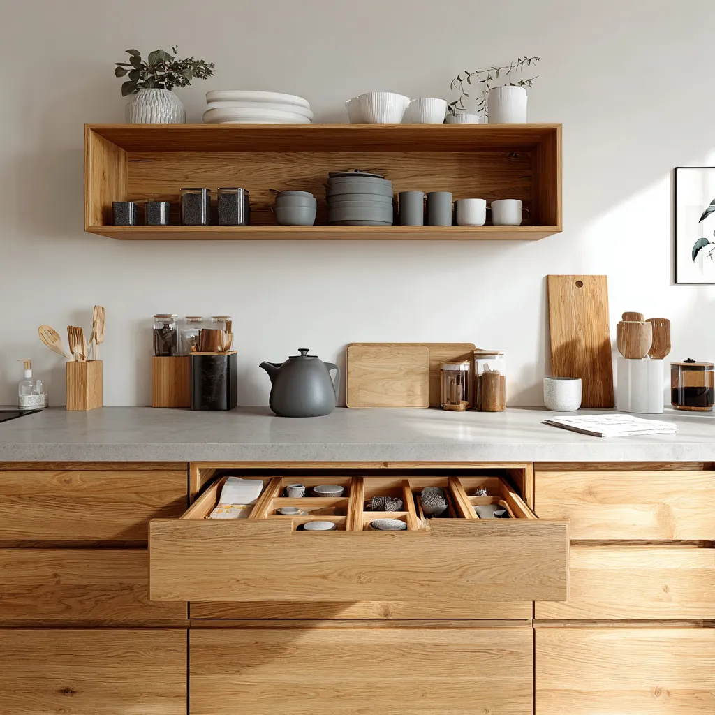 • **Drawer Organizers:** Invest in quality drawer inserts for cutlery, utensils, and spices. Everything has its place.