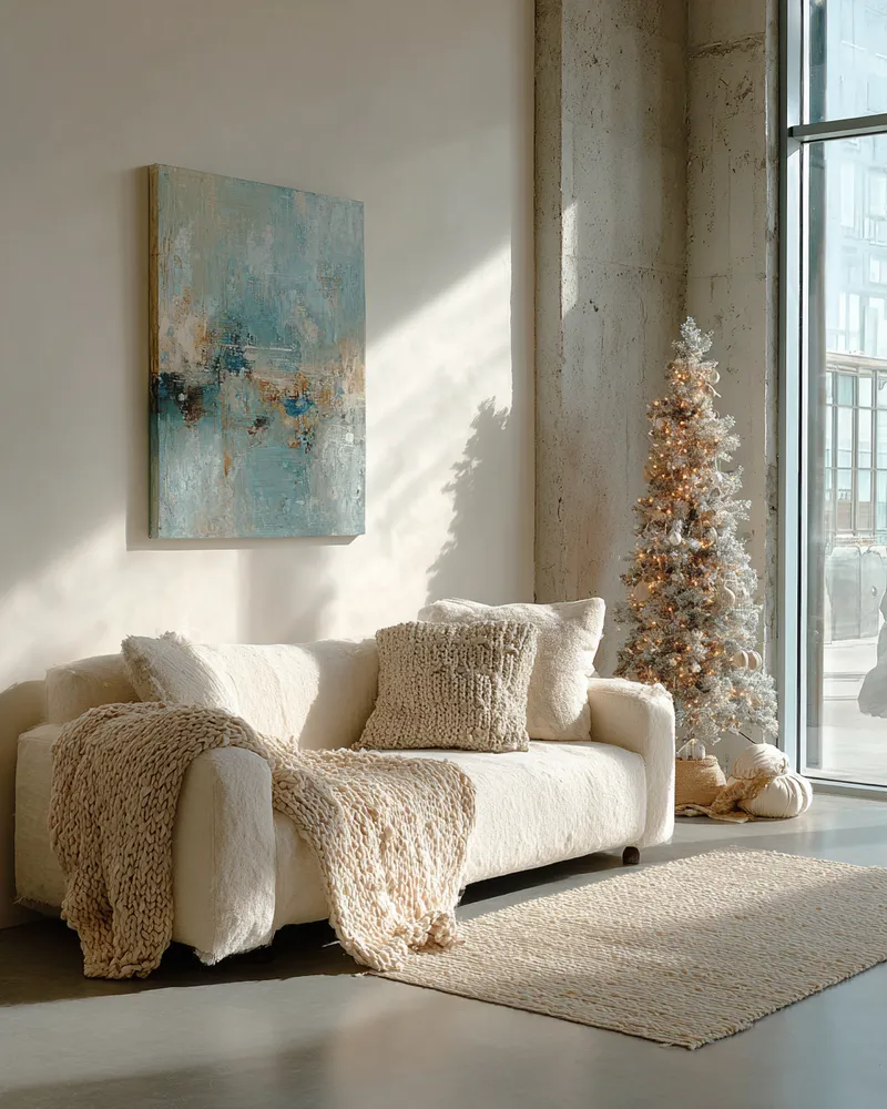 Minimalist Christmas Living Room: Abstract Art Focus 🖼️
