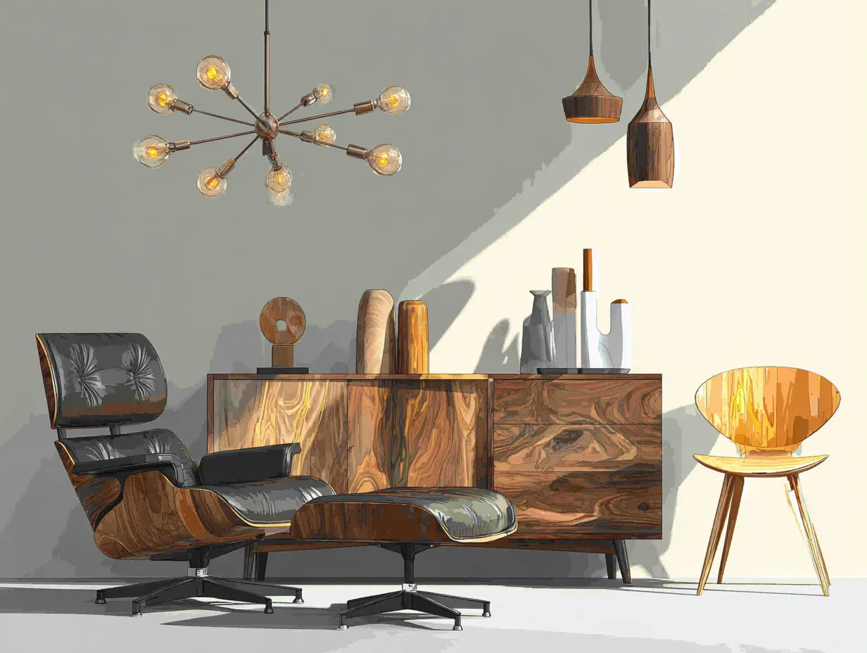 The enduring appeal of Mid-Century Modern furniture lies in its blend of form and function. These iconic pieces not only look amazing but are built to last! 🌟 1. The 'Eames Lounge Chair' replica: Pure comfort and style. 2. A 'Credenza' in walnut or teak: Perfect for storage and display. 3. The 'Sputnik Chandelier': A statement ceiling light. 4. A 'Tulip Table' with chairs: For a dining or accent area. 5. A 'Shell Chair': Iconic sculptural seating. Invest in these timeless classics to elevate your home. What's your favorite MCM piece? 👇