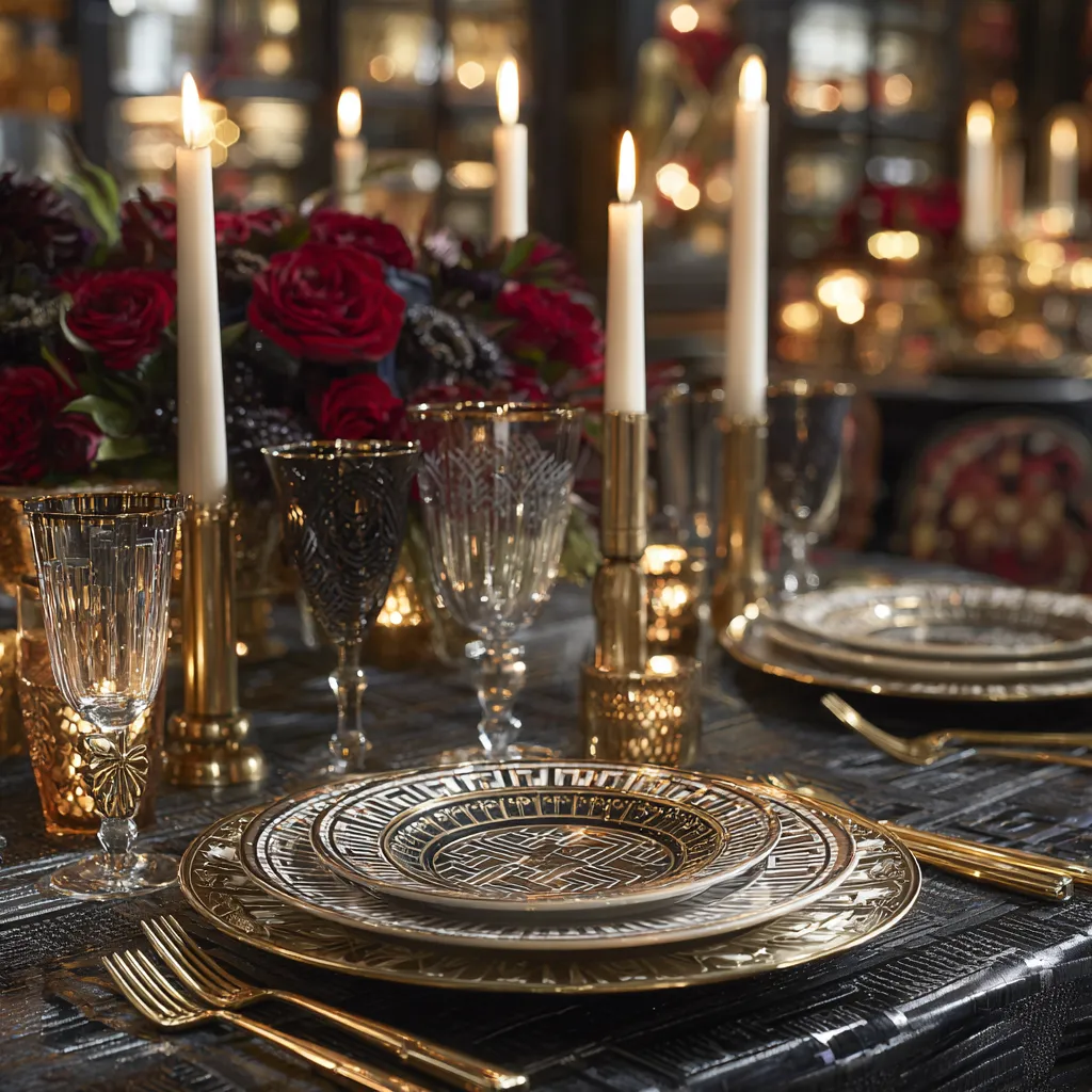 Geometric Holiday Table Setting: Art Deco Dining Ambiance 🥂