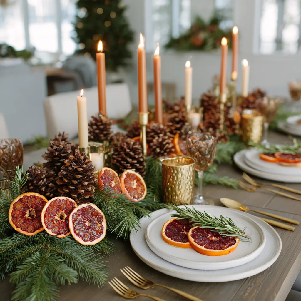 Elevate your Christmas dinner setting by embracing nature's palette! 🍽️ I love combining sophisticated elements with organic textures to create a truly inviting festive tablescape. Instead of plastic reindeer, opt for a base of fresh evergreen sprigs, pinecones, and dried orange slices. 🍊 Intertwine these with subtle metallic accents like brass candlesticks or delicate gold cutlery. Personalize with sprigs of rosemary at each place setting for a beautiful aroma and a touch of green. This natural approach brings a sense of grounded elegance and connects your dining experience to the beauty of the season. Save this for your next holiday gathering! 🌟 #FestiveTablescapeIdeas #ChristmasDinnerDecor #NaturalHolidayDecor #BotanicalTablescape #ElegantDinnerParty #BiophilicDining #DIYChristmasDecor #HomeStylingIdeas #SeasonalDecor #TableSettingInspo
