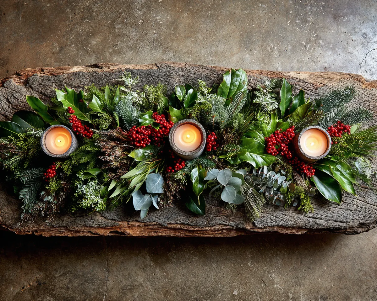 This year, create a Christmas centerpiece that truly breathes life into your holiday table! 🎅 Let's blend rustic charm with the enduring beauty of evergreens. Imagine a base of textured bark or a simple wooden log adorned with cuttings of pine, fir, and cedar. 🌲 Add sprigs of holly with bright red berries, eucalyptus, and maybe a few cinnamon sticks for scent. Nestled amongst the greenery, place warm pillar candles to create a cozy, inviting glow. 🕯️ This natural centerpiece brings the spirit of an enchanted forest right into your home, offering a grounding and organic touch to your festive celebrations. Save this for your table inspiration! #ChristmasCenterpieceIdeas #RusticChristmasDecor #EvergreenCenterpiece #NatureInspiredHolidays #TableDecorIdeas #FestiveGreenery #HandmadeChristmas #UrbanJungleChristmas #HolidayEntertaining #DIYCenterpiece