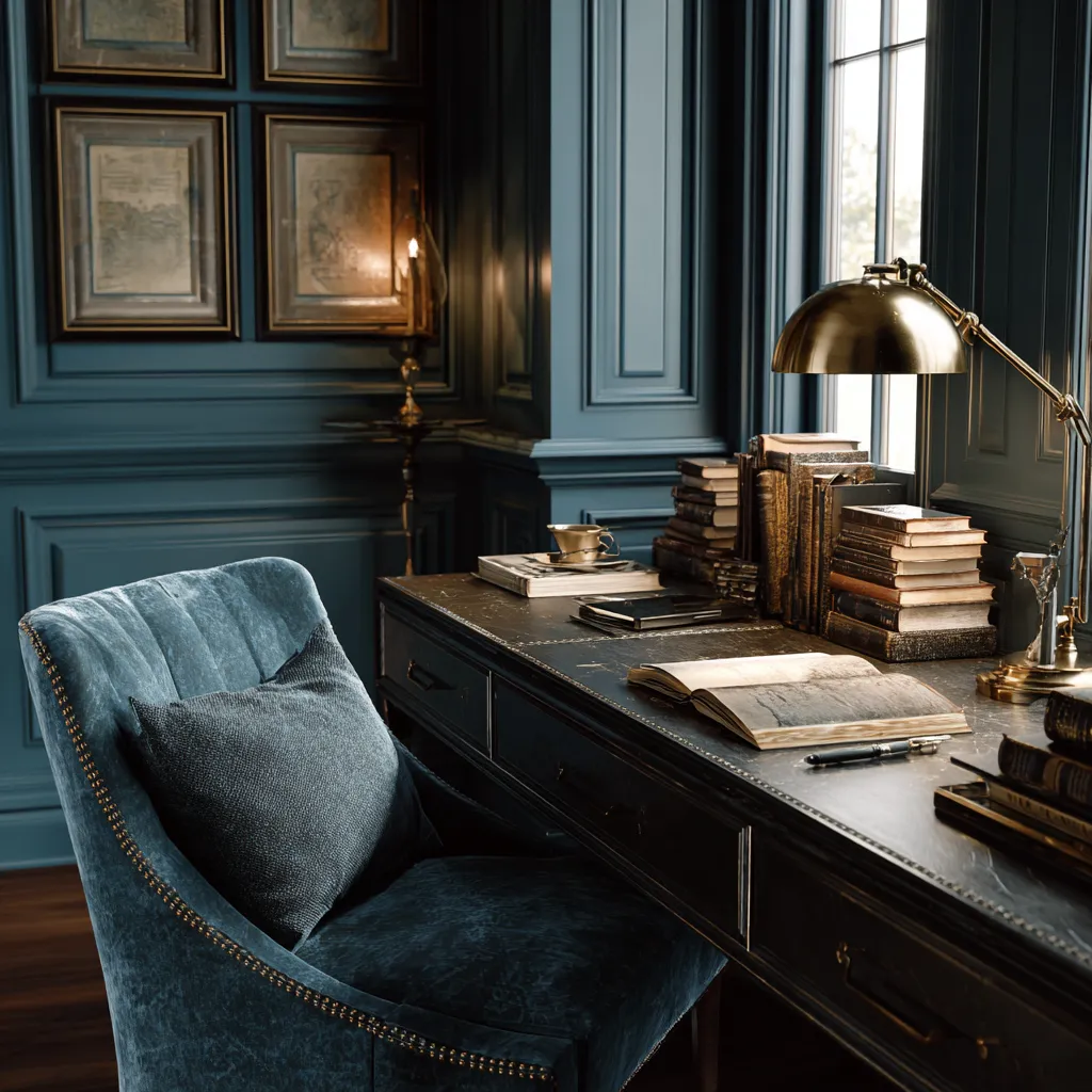 💜 Moody Plum & Deep Teal: Chic & Cozy Velvet Study Nook!