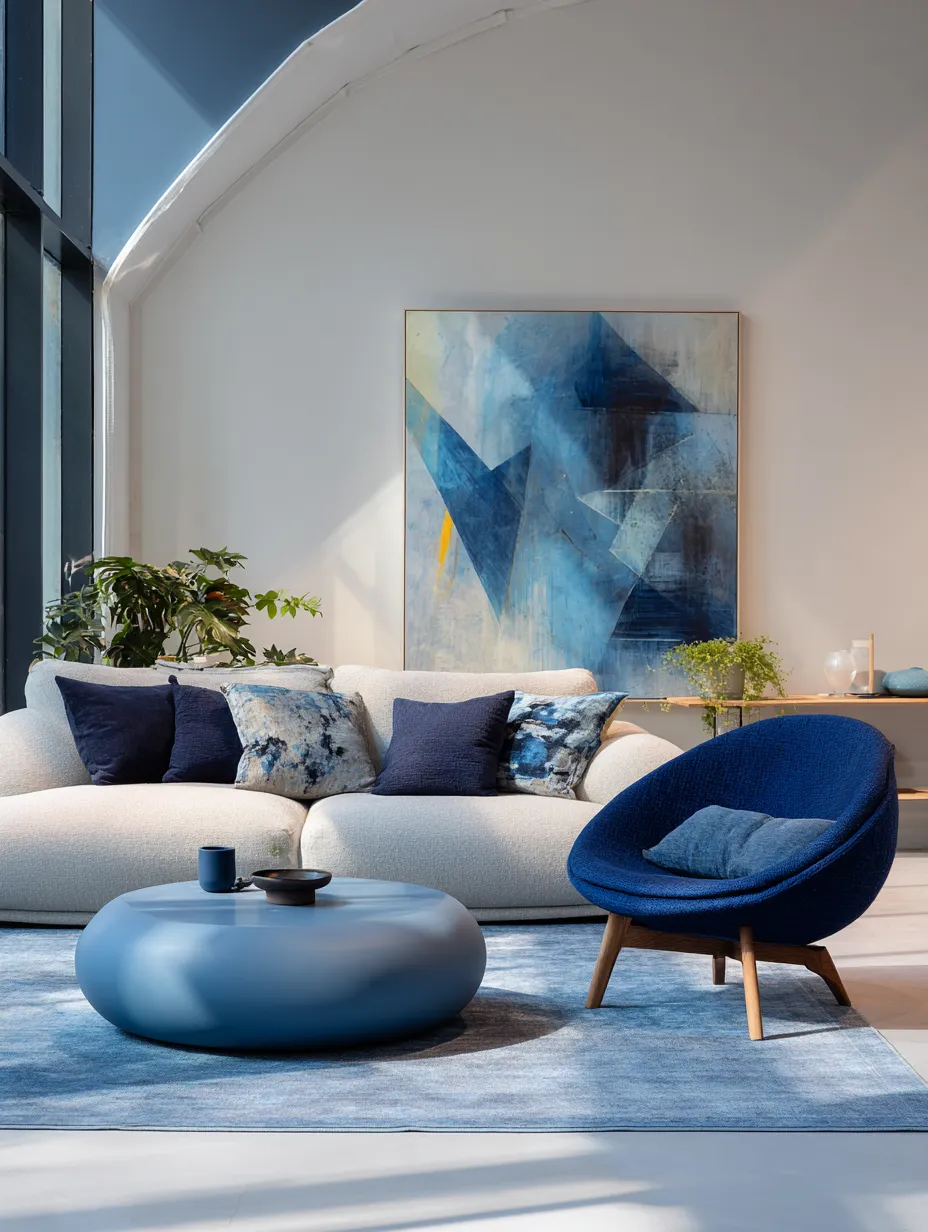 Infuse your living room with artistic energy! 🌟 By embracing abstract forms and striking blue tones, you can create a space that is both captivating and comfortably chic.