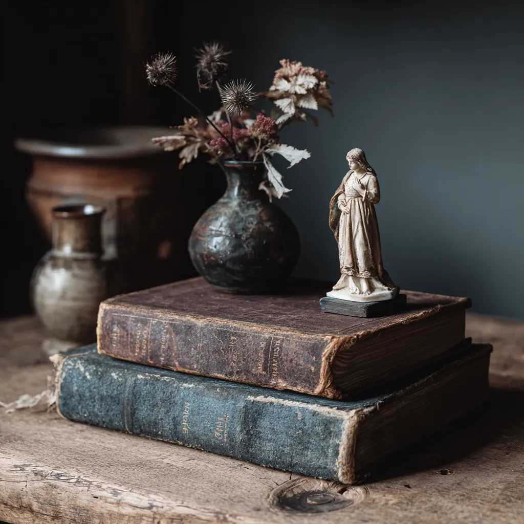Every object I collect has a story, and I love arranging them into vignettes that tell a visual narrative. It's about curating a small scene that evokes a feeling or a memory. I often combine items of different heights and textures: a favorite book, a small ceramic figurine, and a delicate dried floral stem. The composition matters! ✨ Each vignette is a miniature museum of my personal journey.