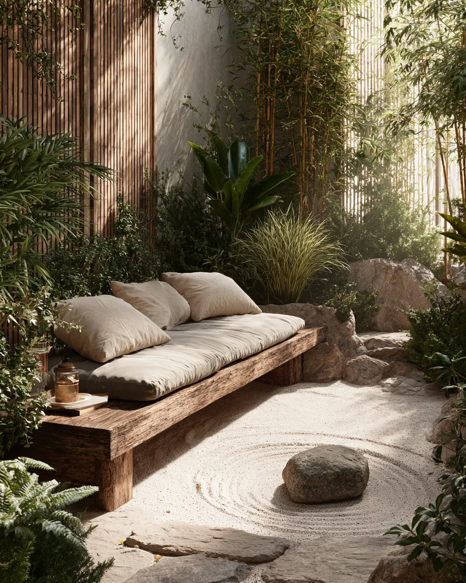 Create your personal paradise, one calm corner at a time. Save this for your ultimate outdoor design inspo! #GardenIdeas#PatioIdeas#OutdoorLivingIdeas#JapandiIdeas#ZenGardenIdeas#HomeDecor#ExteriorDesign#MinimalistPatio#SereneSpace#GardenOasis