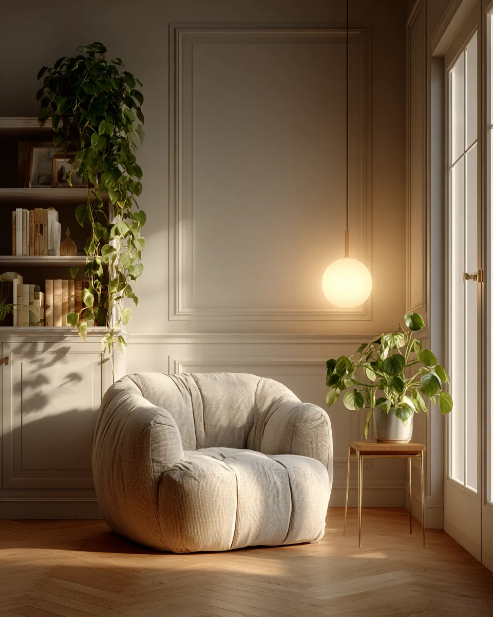 Elevate your reading nook into a green sanctuary! 🪴 Combine the comfort of a cozy chair with the serenity of plants for the ultimate escape. Place a small, lush plant like a ZZ plant or a Peperomia on a side table, or hang a Pothos nearby to add a touch of life.