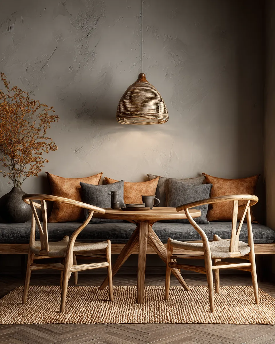 This creates a charming and functional area for meals and conversations. Save for your cozy dining inspiration! ✨ #DiningNookIdeas#WoodDiningIdeas#CozyDiningIdeas#SmallSpaceDiningIdeas#NaturalWoodIdeas#DiningRoomDecor#HomeDecor#InteriorDesignTips#ChicNooks#EarthyHome