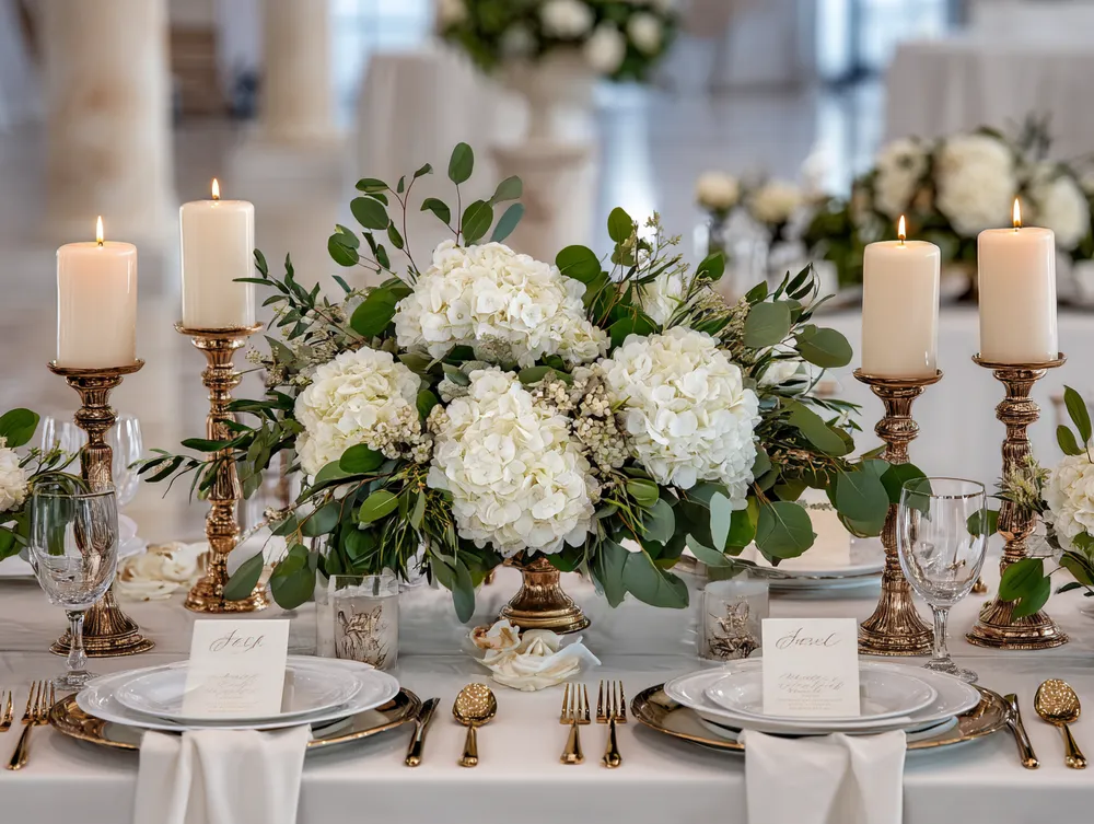 * **Classic Table Linens:** Crisp cotton or linen tablecloths, runners, and cloth napkins.