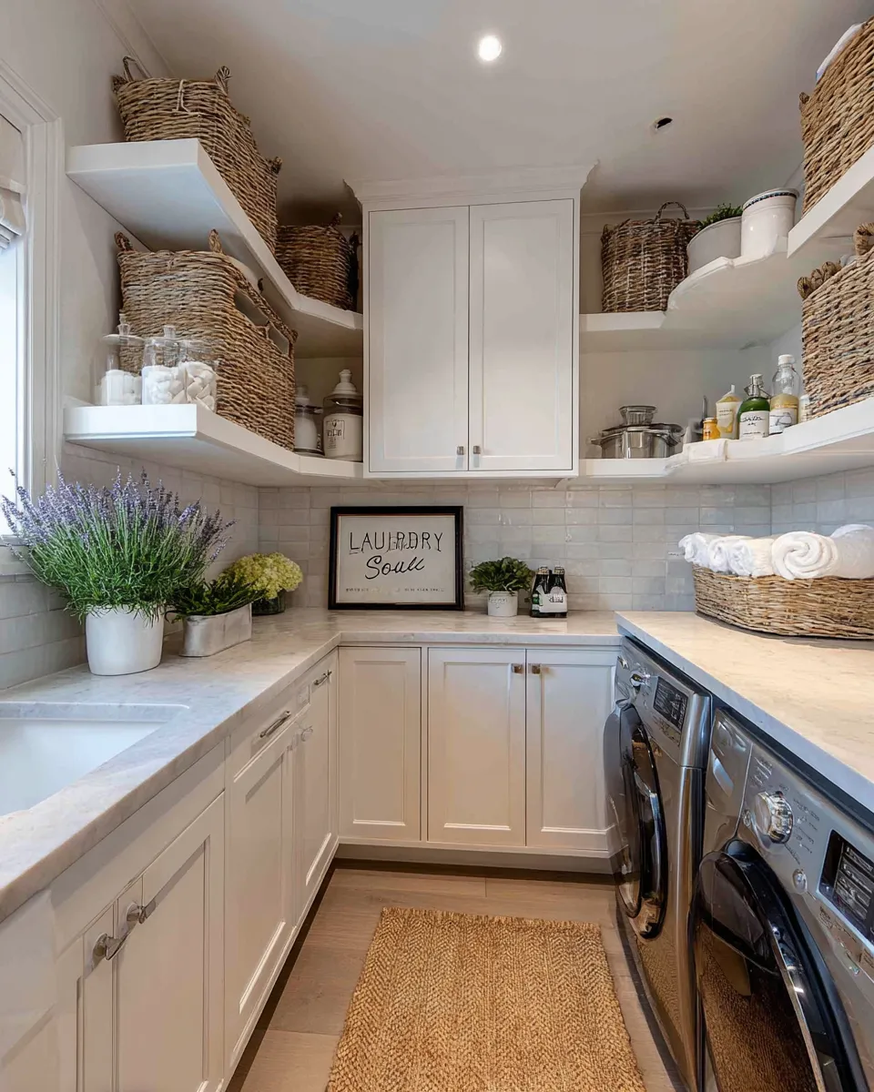May your laundry room be a place of efficiency and understated charm! Save this for your future home inspo! #LaundryRoomIdeas#SouthernStyleDecor#HomeDecorTips#CharmingSpaces#InteriorDesignInspo#OrganizedHome#DecorIdeas#FunctionalDecor#HomeStyling#ElegantDetails