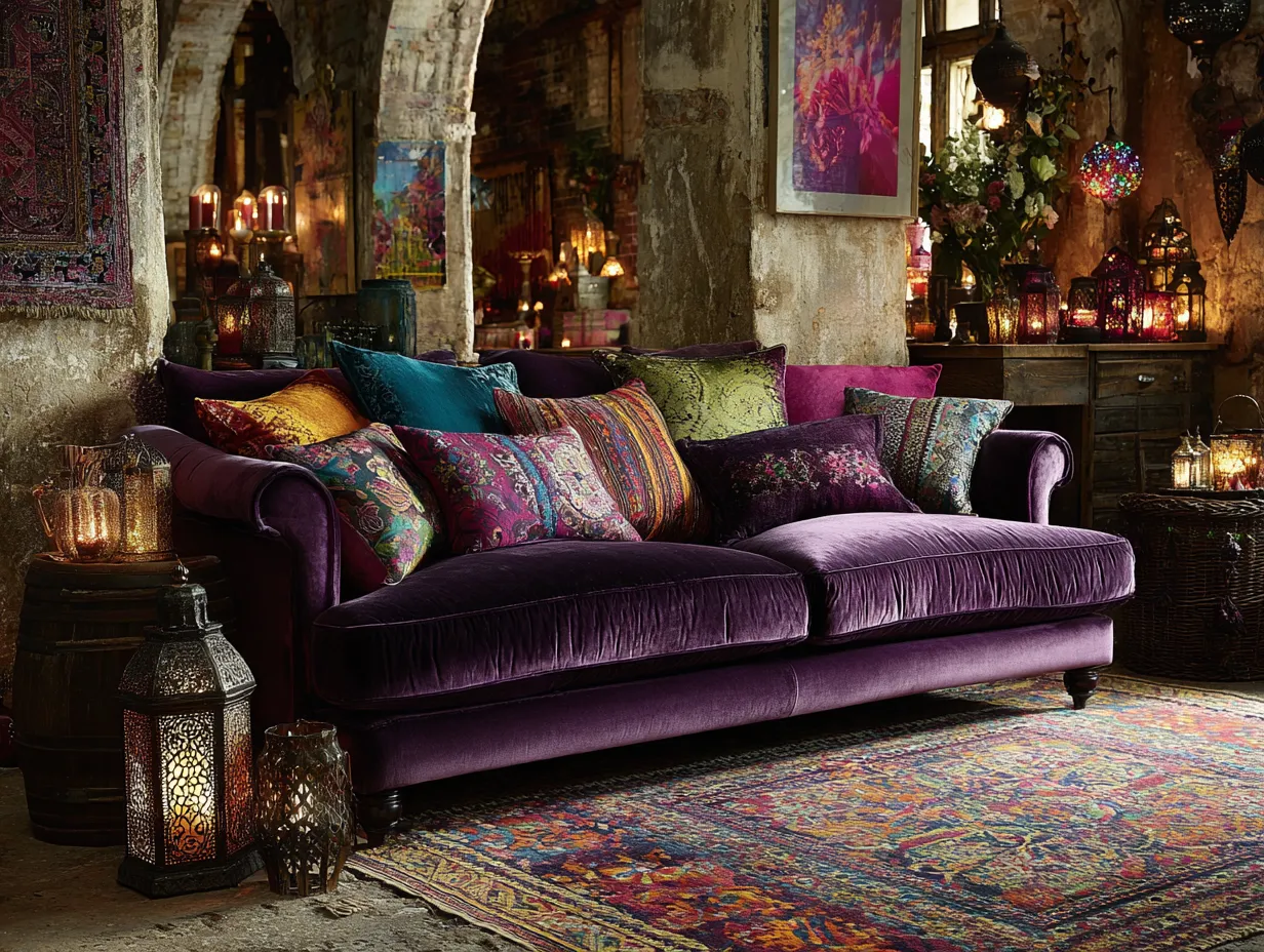 🌈 Global textiles: Think colorful embroidered cushions, throws, and rugs.