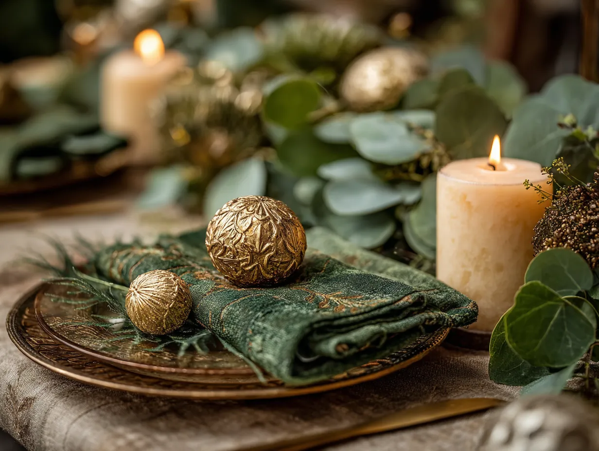 4. **Greenery Garland:** A simple garland of pine or eucalyptus down the center adds natural beauty and festive fragrance.