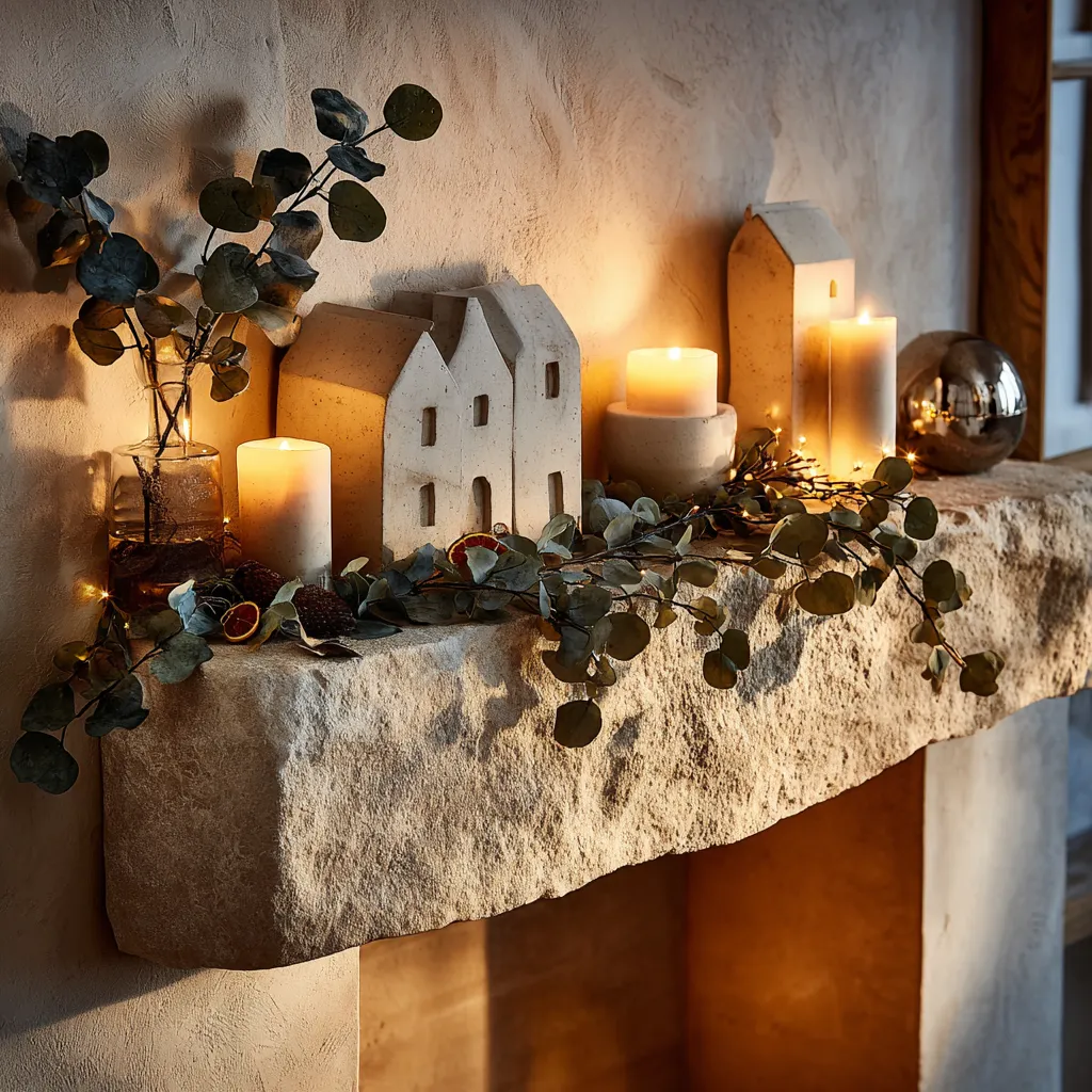 Minimalist Christmas Mantel: Stone, Wood & Subtle Sparkle 🌟🪵