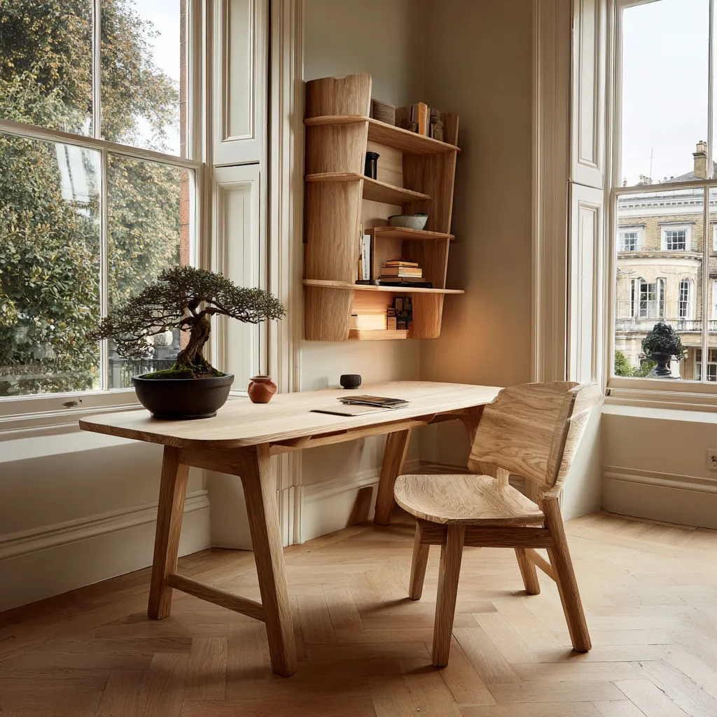 Create an inspiring and functional workspace with Japandi principles. Focus on decluttering and intentional organization. A minimalist desk in natural wood, paired with an ergonomic chair, forms the core. Utilize integrated or wall-mounted storage to keep surfaces clear. Natural light is paramount for productivity and well-being. Incorporate a few symbolic elements, like a small bonsai or a simple piece of art, that foster calm and focus. The aim is a serene, distraction-free environment conducive to productivity. Work in tranquility! 📚💡 #JapandiIdeas#WorkspaceIdeas#JapandiWorkspace#MinimalistWorkspace#HomeOfficeDesign#ProductivitySpace#OrganizedHome#DesignForFocus#CalmEnvironment#TheArchitecturalLens