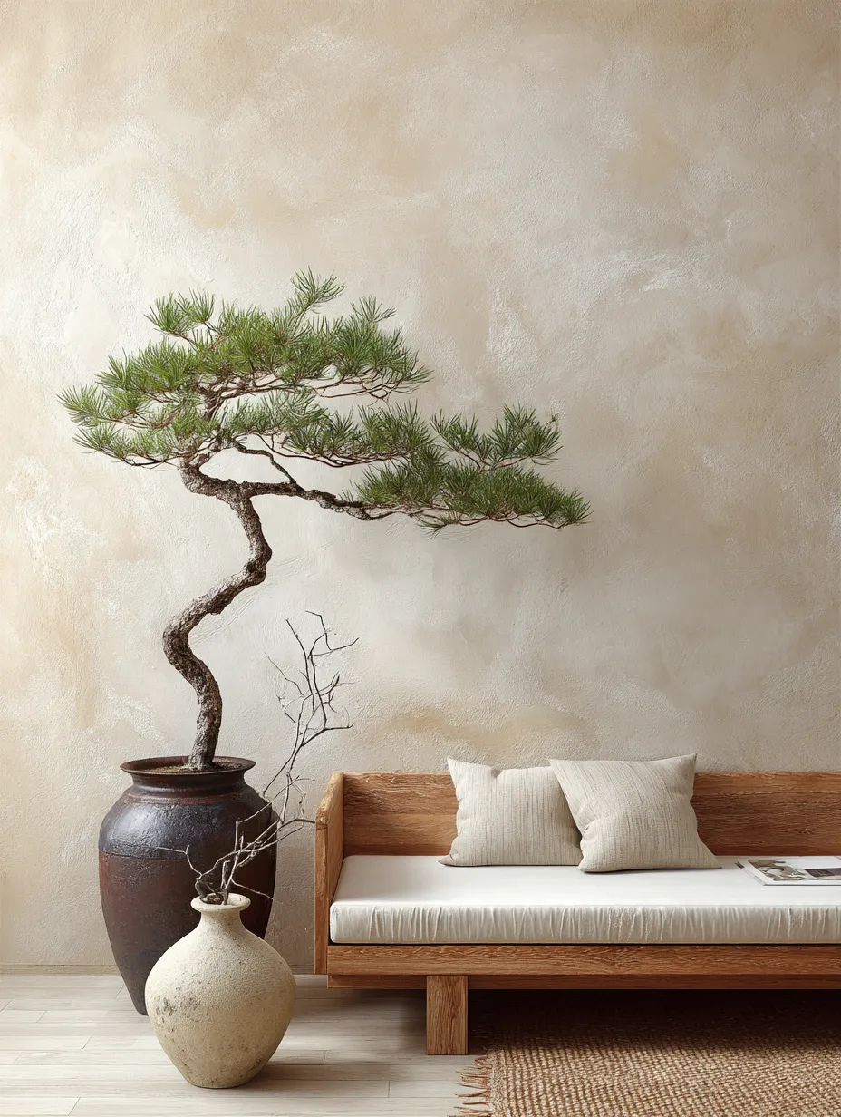 2. **Botanical Accents:** Minimalist arrangements of greenery like bonsai or branches. 🪴