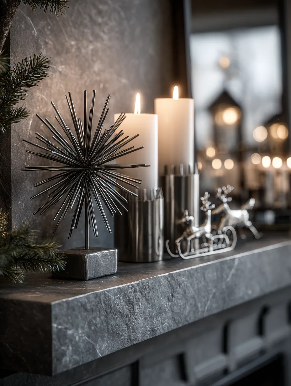 Beyond the Tree: Chic Metal Accents for a Minimalist Christmas Mantel ✨