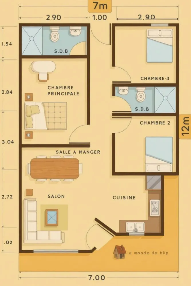a floor plan for an apartment with the bedroom on one side and the bathroom on the other