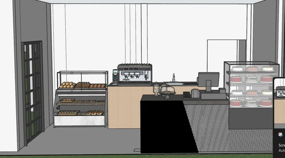 Área de Caja, Preparación de Bebidas y Exposición de Productos. El resultado es un espacio elegante, romántico y femenino, donde predominan los materiales nobles, la paleta clara, los detalles ornamentales finos y una sensación de calma sofisticada. Cada elemento —desde las lámparas hasta las bandejas de exhibición— contribuye a una atmósfera de encanto parisino que invita a quedarse, conversar y disfrutar.