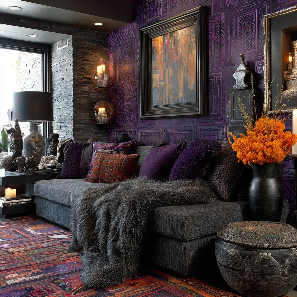 Dramatic Duo: Deep Plum & Emerald Green for a Luxe Lounge 💜💚
