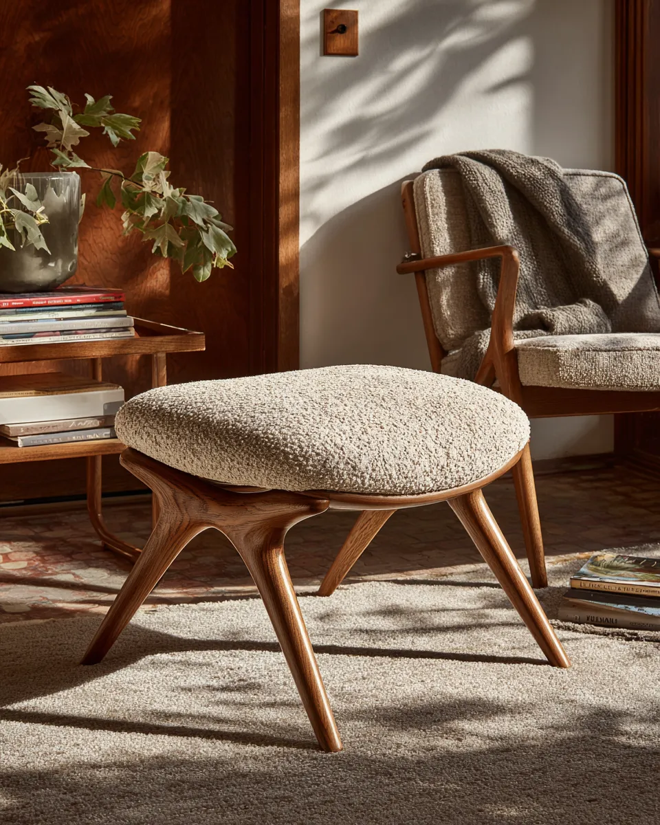 Don't underestimate the power of the pouf or ottoman in a midcentury modern space! These versatile pieces add a playful yet functional touch. From sculptural round designs to sleek rectangular shapes, they’re perfect for extra seating, a footrest, or even a makeshift coffee table when topped with a tray. I love finding ones in rich leather, textured wool, or bold patterned fabrics that complement the room's aesthetic. They’re a simple way to inject personality and comfort. What’s your favorite use for a pouf? 🤔 #MidcenturyPoufsIdeas#OttomanIdeas#AccentFurnitureIdeas#LivingRoomIdeas#HomeDecorIdeas#MidcenturyModern#RetroDecor#FurnitureAccents#StylishSpaces#CozyCorner