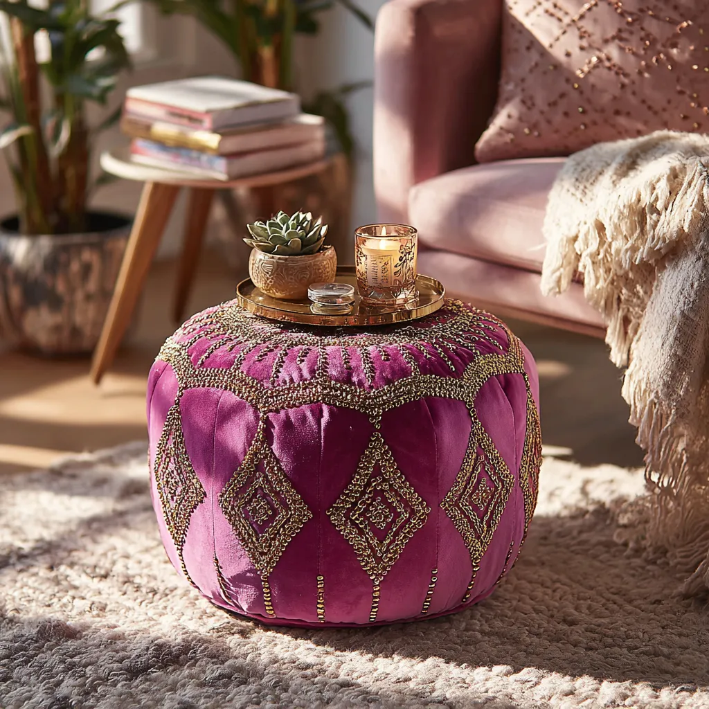 Don't underestimate the humble pouf! These versatile gems add instant personality and comfort to any room. 🌟 Use them as footrests, extra seating, or even stylish side tables. Hunt for poufs in fun textures like woven rattan, plush velvet, or embroidered fabrics. Bold patterns, vibrant colors, or quirky shapes can make them true statement pieces. They're perfect for adding a touch of playful charm and a pop of color to your living space! ✨
