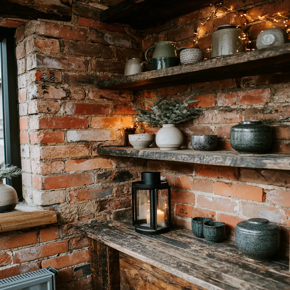 * **Functional Decor:** Open shelving displaying your everyday dishes, cast iron pans, and woven baskets add to the lived-in feel.