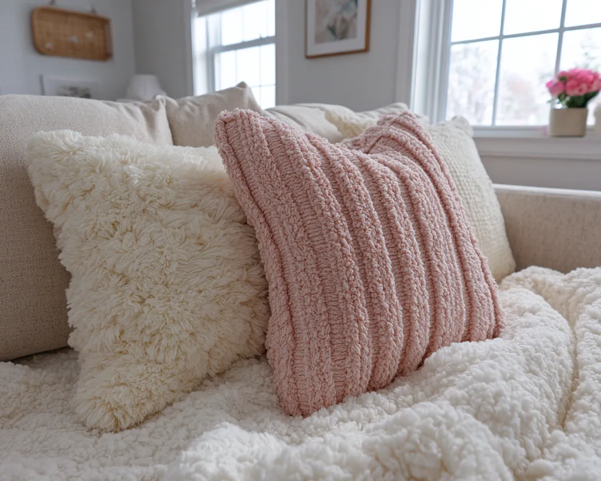 * **Throw Pillows:** A collection of chenille pillows adds instant softness to sofas.