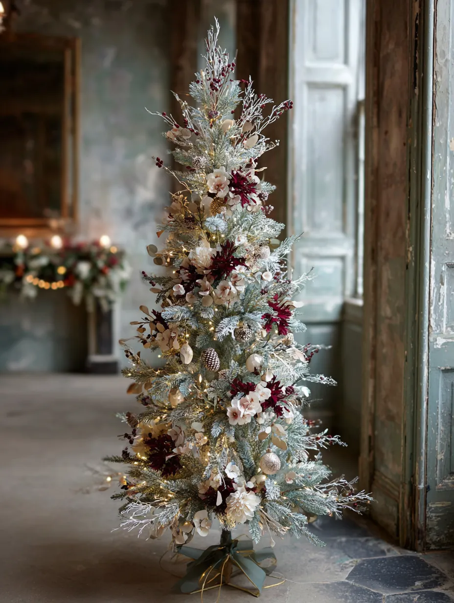 Transform your Christmas tree into a sophisticated focal point with a touch of French country charm! This year, we're steering clear of tinsel overload and embracing natural beauty. Imagine a perfectly flocked or deep green tree adorned with handcrafted wooden ornaments, delicate dried flowers, and ribbons in muted, earthy tones like cream, deep green, and subtle burgundy. Warm white fairy lights are key for that enchanting glow. Consider adding vintage-inspired glass ornaments for a touch of nostalgic elegance. This approach creates a beautifully serene and inviting holiday display. Tap save for your holiday inspo! โจ #ChristmasTreeIdeas#ChristmasTreeIdeas#FrenchCountryChristmas#RusticChicDecor#HolidayDecor#ElegantChristmasTree#FarmhouseChristmas#NaturalDecor#ChristmasOrnamentIdeas#CozyChristmas#ChateauStyleChristmas