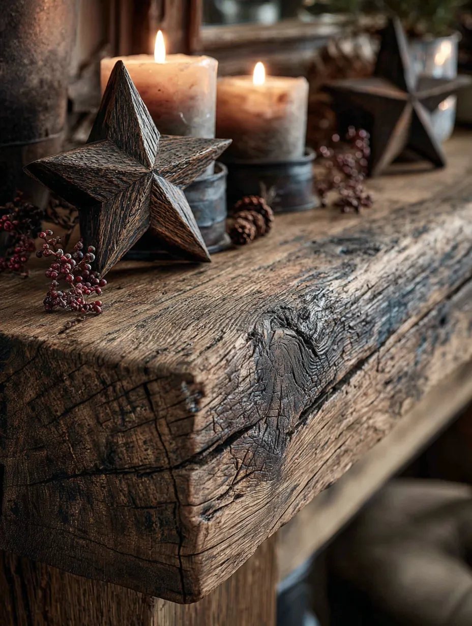 🪵 Holiday Mantel Magic: Unfinished Wood & Hand-Forged Accents ✨