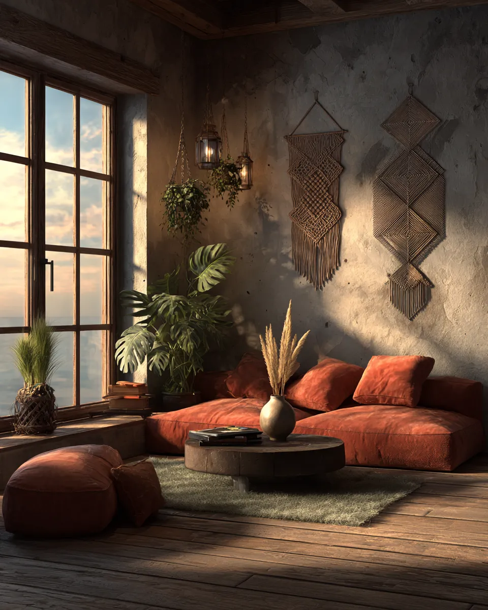 * **Textures:** Plush shag carpets, velvet upholstery, and macrame wall hangings are key!
