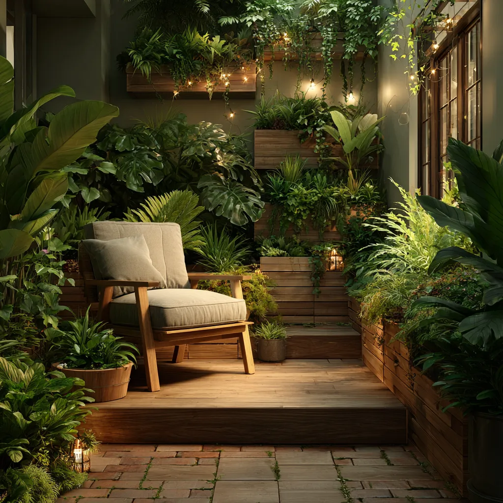 Embrace biophilic design with lush greenery and natural textures. Think hanging plants, a small vertical garden, and a cozy floor cushion.