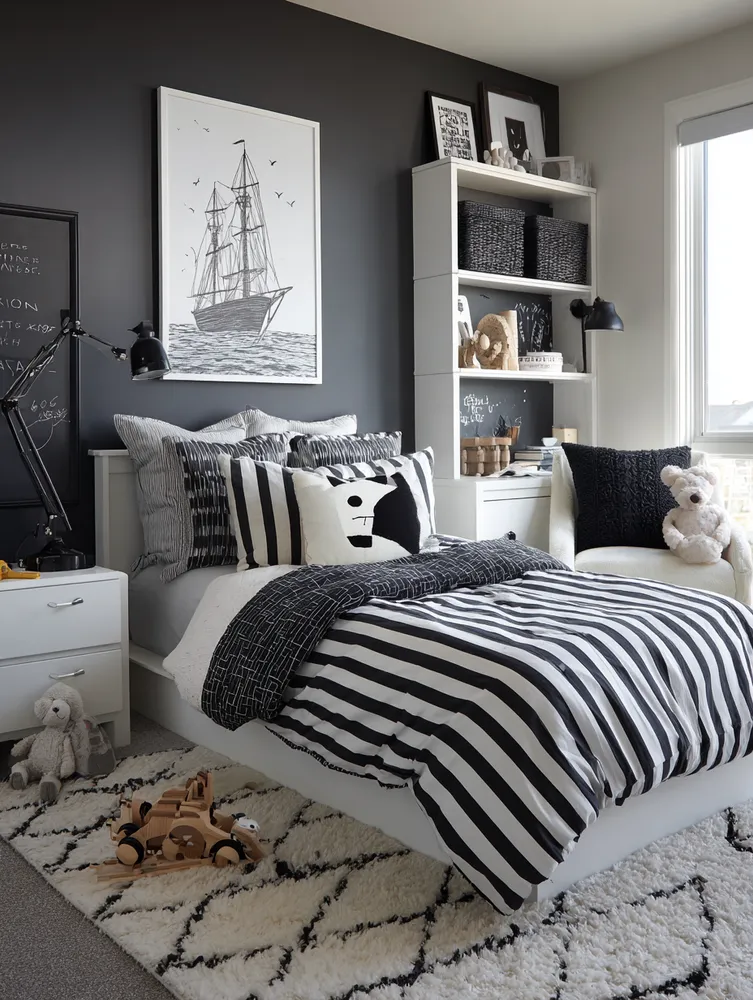 Monochrome Kids' Room: Stylish & Timeless 🖤🤍