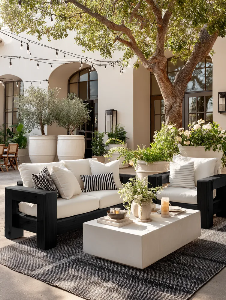 Monochrome Outdoor Seating Areas: Chic Lounges 🖤🤍