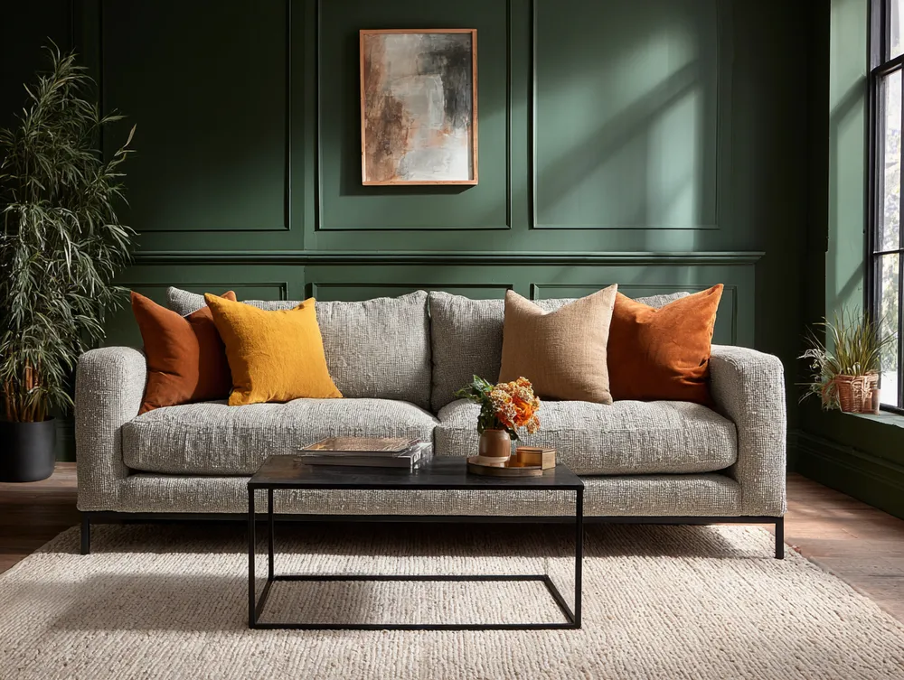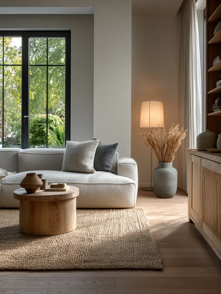 ✨ Comfort First: A plush, overstuffed armchair in a natural linen or textured weave is essential.